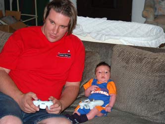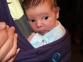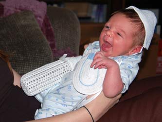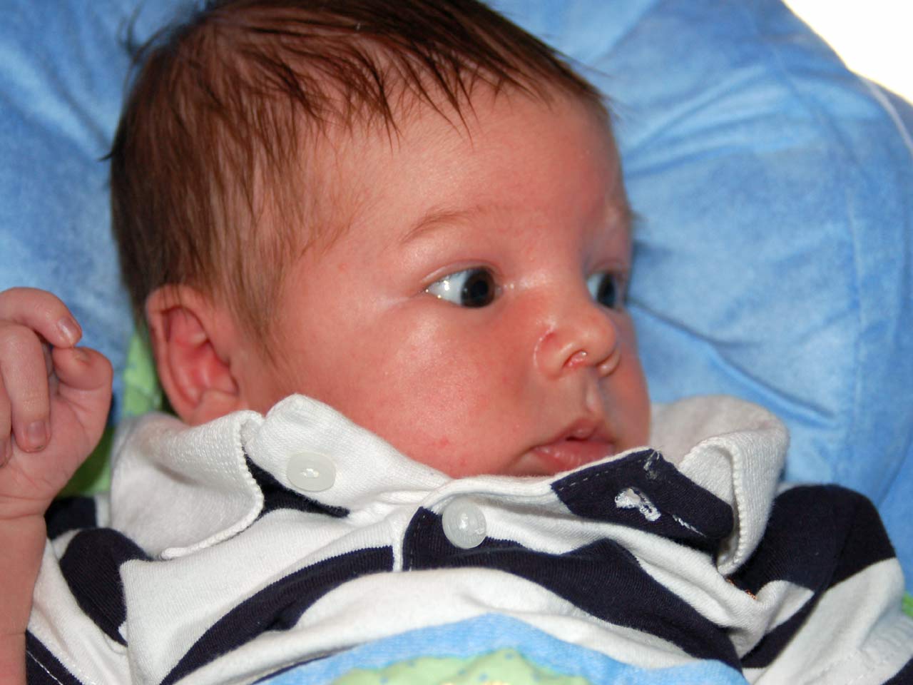 | Eating his mother's hand | Unsure of his new bouncer | ||