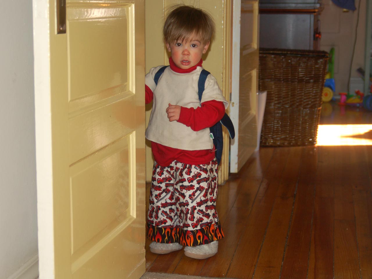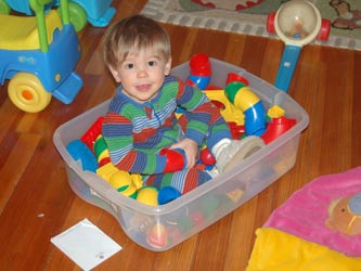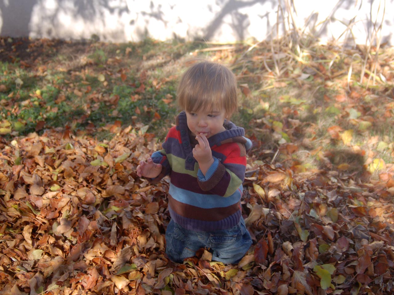 | Playing in the leaves again | Blending in with the Duplo blocks | ||