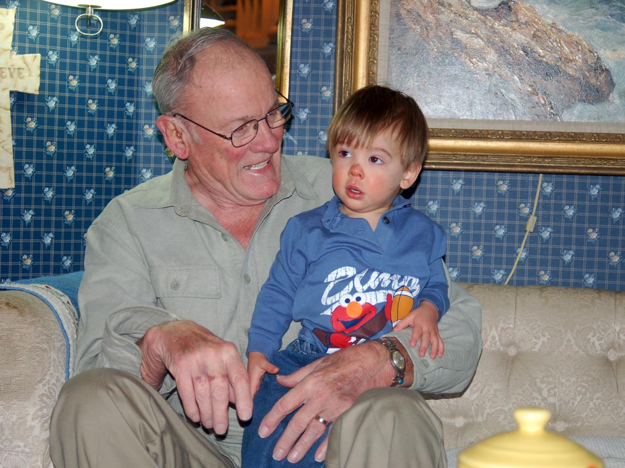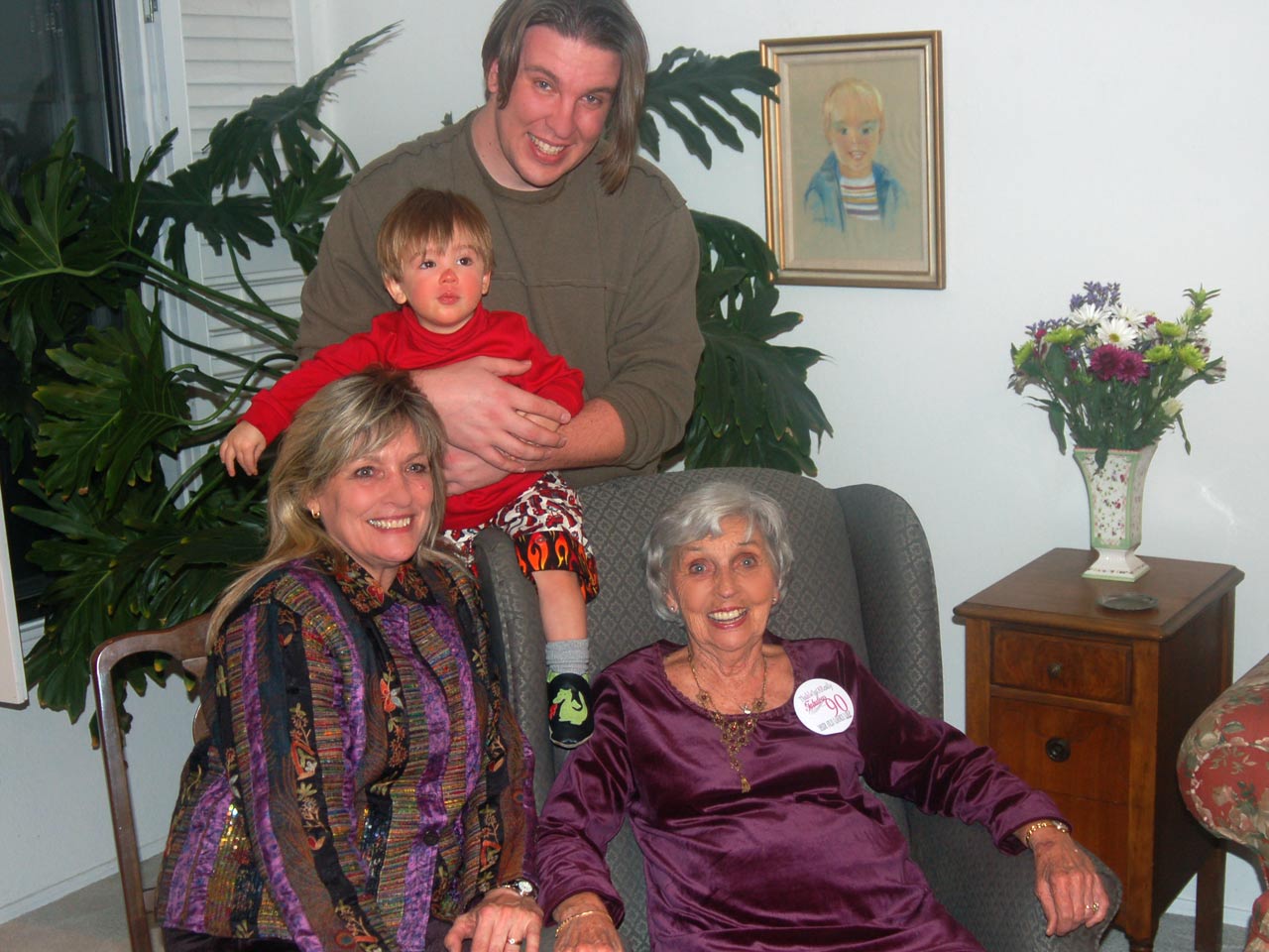 | Generations photo with sick Ro | Trying not to sneeze on Great Grandpa | ||