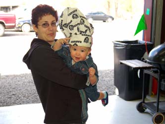 | Forced to pose with Great Grandpa's flora | Hanging with Kevin | ||